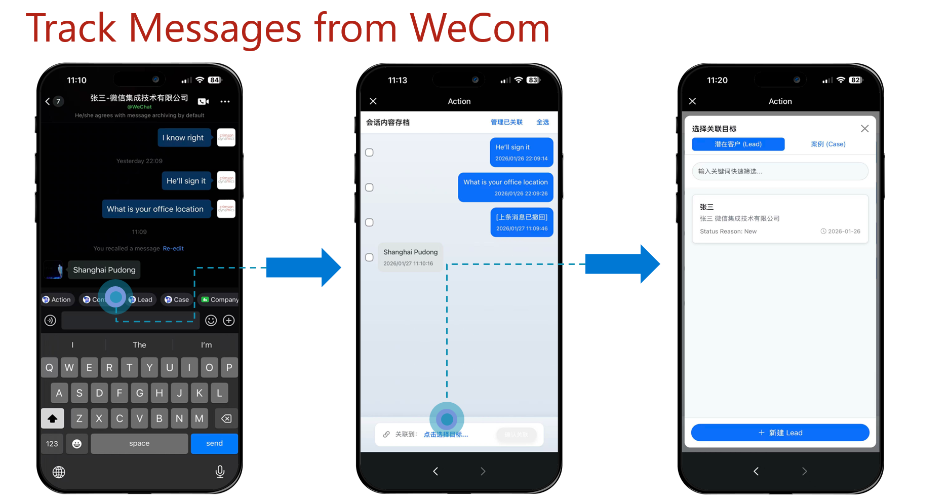 ✅ Yes. Agents can create new lead/case and track conversation against lead/case within WeCom mobile/desktop app. |